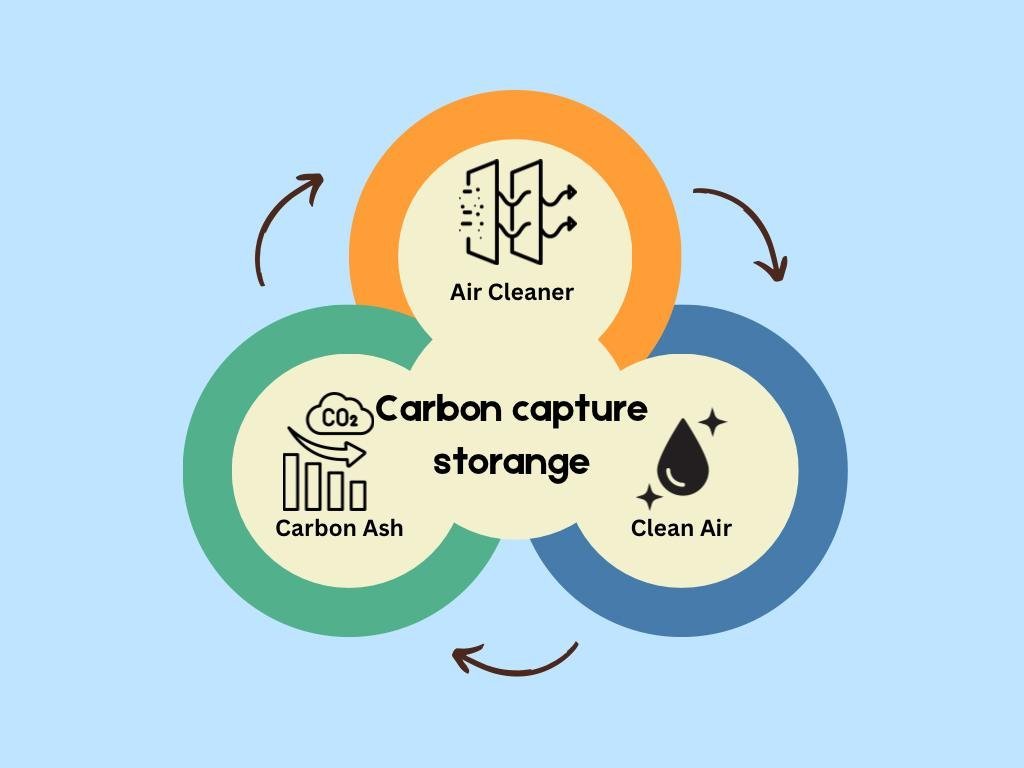 Carbon Capture and Storage (CCS) is a technology that captures carbon dioxide (CO2) emissions from sources like power plants and industrial facilities, and stores it as ash solid or uses it for other purposes. This helps reduce the amount of CO2 and greenhouse gases released into the atmosphere, which is a major contributor to climate change.